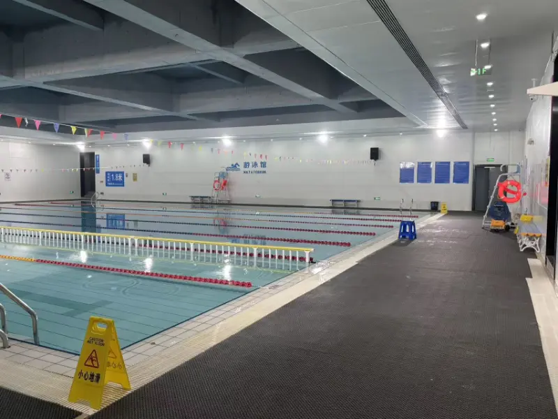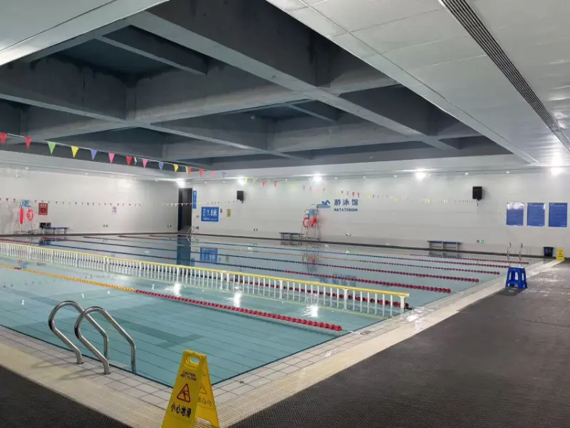Uima-altaan ulkopinnassa on metallinen kalasuomupaneelijärjestelmä, joka luo suomumainen valo- ja varjovaikutelma, joka muuttuu julkisivun kaarevuuden ja auringonvalon suunnan mukaan ja tehostaa "veden virtausta". Uima-allasalueen koko kattorakenne paljastuu 48 metrin pituisella ristikolla, joka korostaa rakenteellisen logiikan selkeää ilmaisua ja vahvistaa urheilupaikan tilallista mittakaavaa ja voiman tunnetta. Tapahtumapaikalla on kaksi allasta: kilpailuallas ja harjoitusallas. Kilpailuallas on 50 metriä pitkä ja 25 metriä leveä ja siinä on 8 rataa; harjoitusallas on 50 metriä pitkä ja 17 metriä leveä ja siinä on 6 rataa. Molemmat altaat ovat 2 metriä syviä.