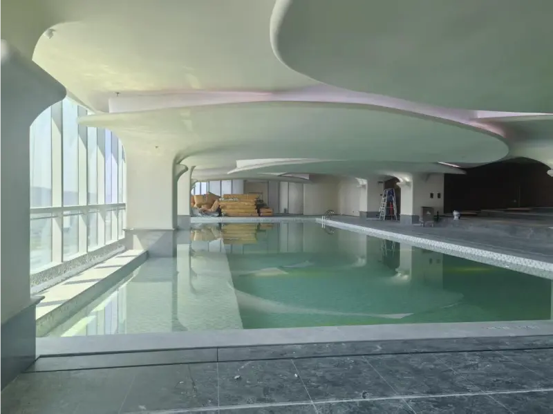 Vakaan mukavuuden ja ympärivuotisen käytettävyyden varmistamiseksi laitosta tukevat edistyneetLämpöpumpputeknologiaa ja tehokastaIlmastointilaitejärjestelmät. Integroitu ilmastointiratkaisu auttaa ylläpitämään vakaata sisäympäristöä varmistaen optimaalisen lämpötilan sekä ilma- että vesitiloissa uima-alueella.